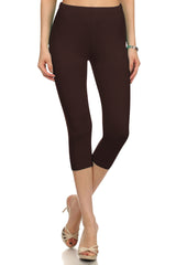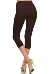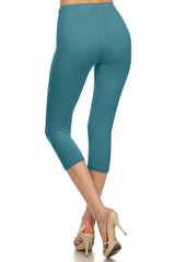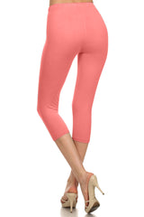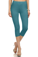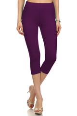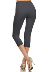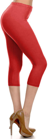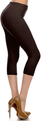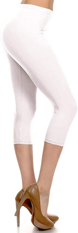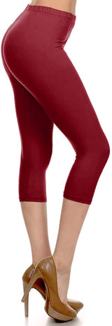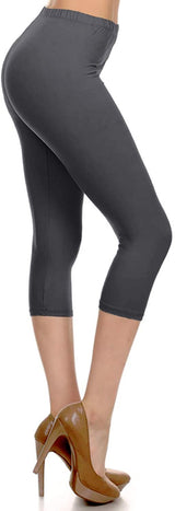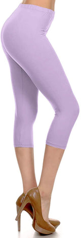 High Waist Solid Microfiber Ultra Soft Capri Leggings (One Size)