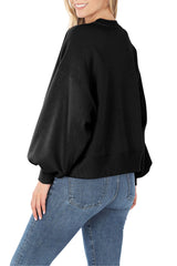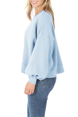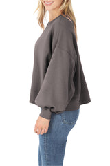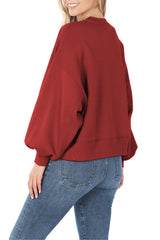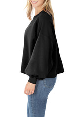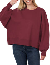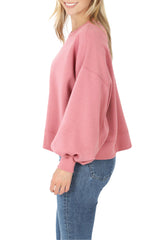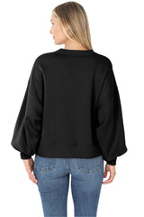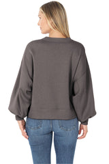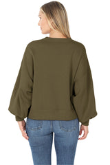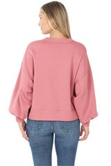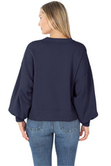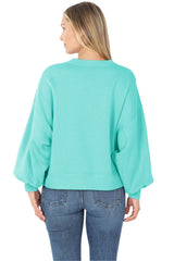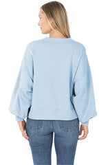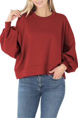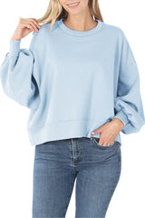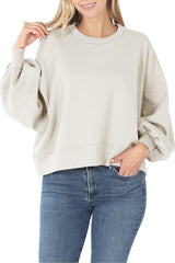 Balloon Sleeve Crew Neck Pullover Short Sweatshirt