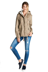 Faux Fur-Lined Contrast Anorak Parka Jacket in Khaki