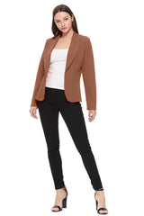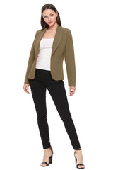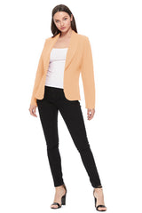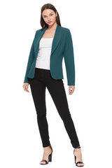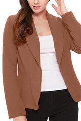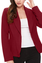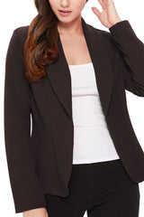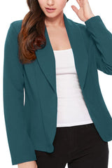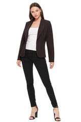 Say hello to your next favorite lightweight blazer! No closure casual jacket that's perfect for a night out or a professional setting. Stylish long sleeve with a solid print and an open front.