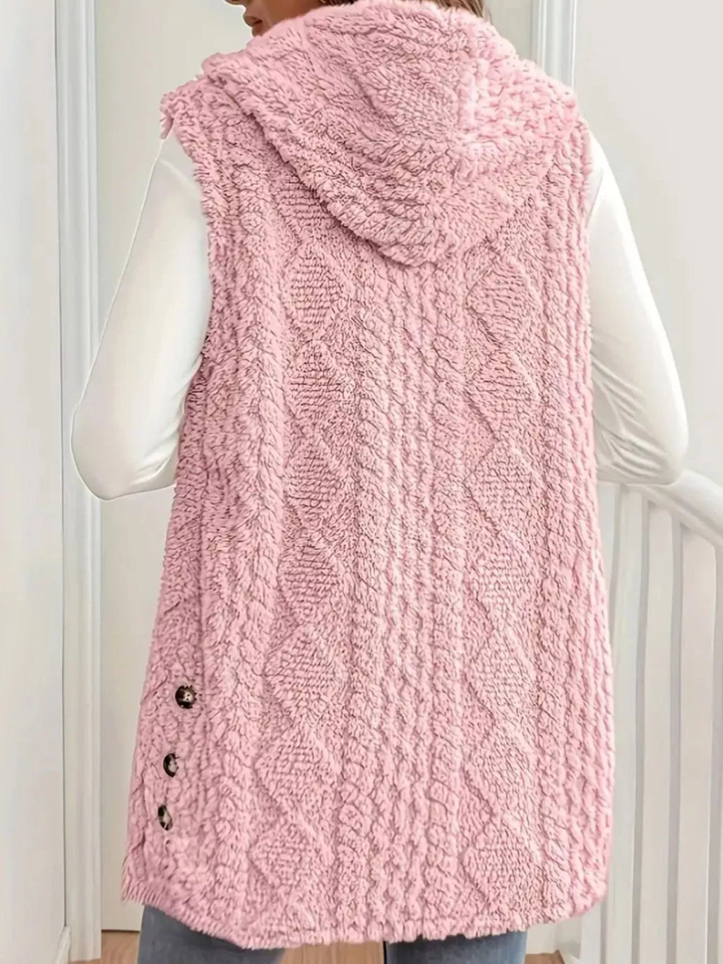 Button Up Plush Hooded Vest Coat