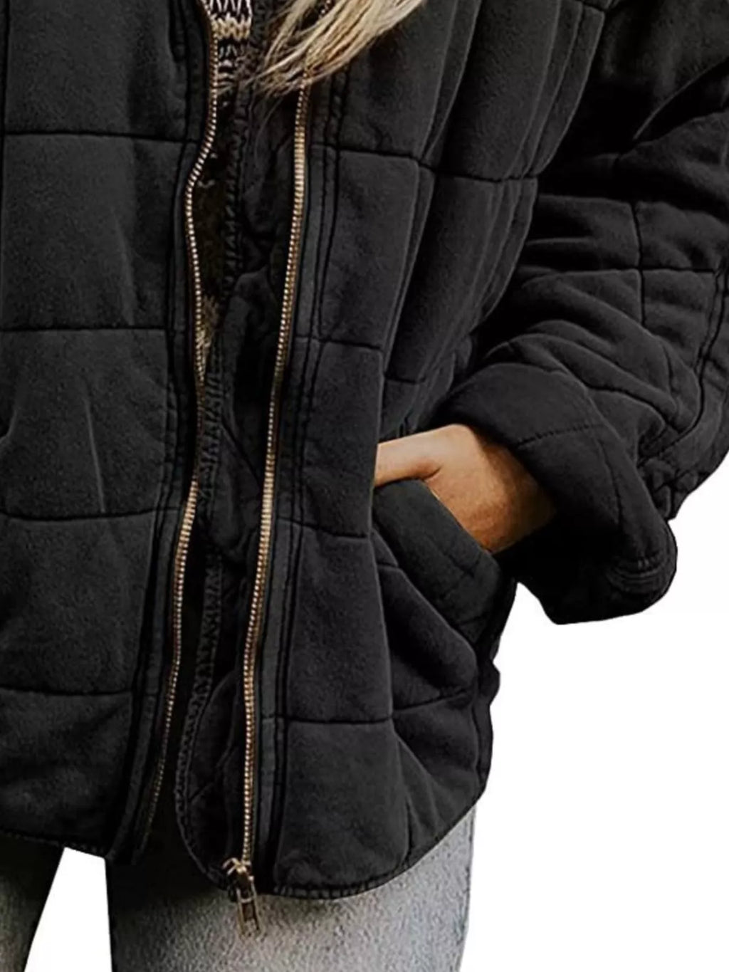 Full Size Zip Up Quilted Bomber Jacket Plus Size